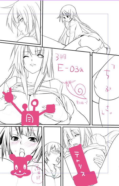 今日公開するページは以前下書きを公開したものと同ページなのですが、今日になって修正はいりまして、ペン入れが先ほど終了するまで丸々数時間・・・!